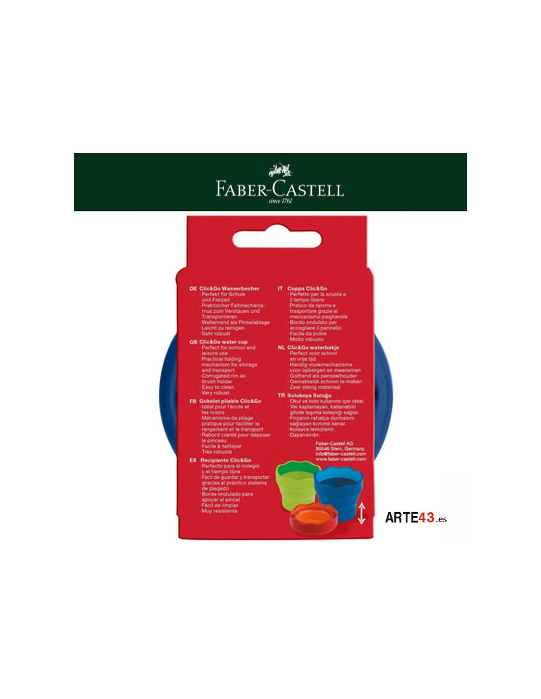 El vaso Clic&Go es un gran complemento al estuche de acuarelas, y apoya la parte más lúdica. Se pliega fácilmente, ahorrando así espacio al guardarlo. También puede usarse para sujetar los pinceles, manteniendo limpio y ordenado el lugar de trabajo. En combinación con el estuche de acuarelas Connector, los vasos Clic&Go ofrecen muchas posibilidades para la pintura, las manualidades y el juego.