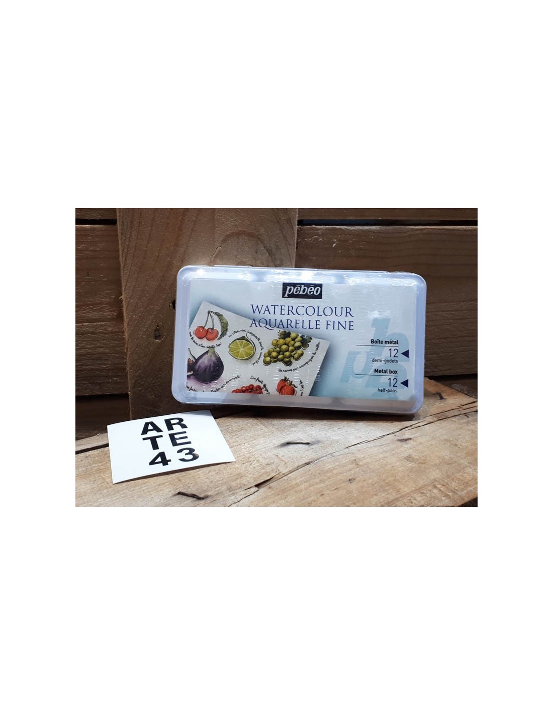 Conjunto de 12 medios godets de acuarelas en estuche metálico