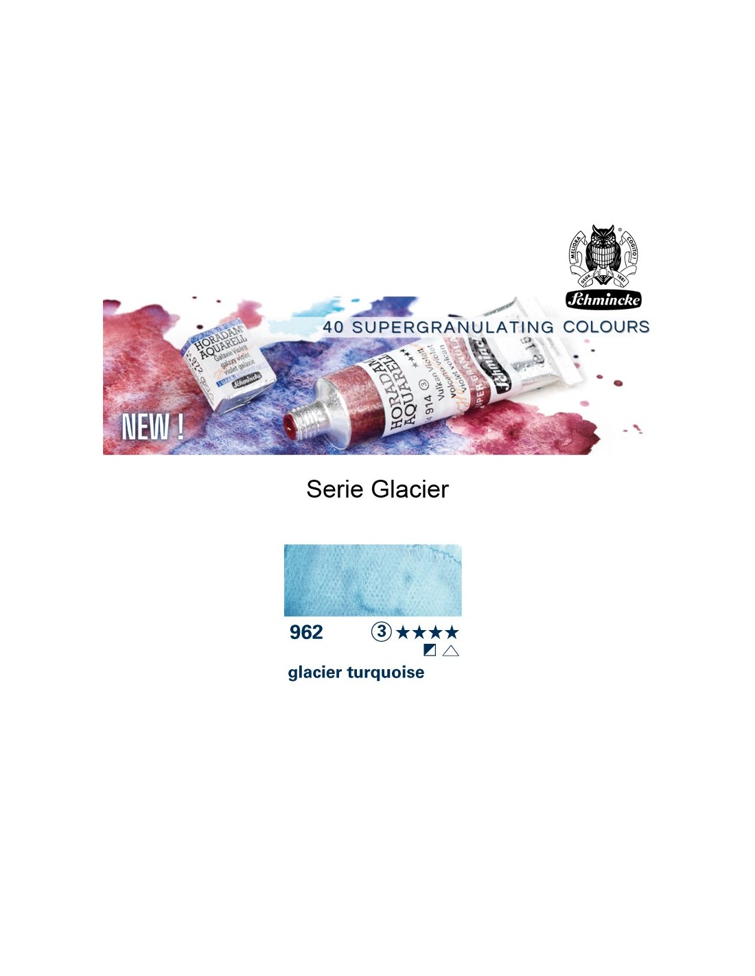 Los colores supergranulados son acuarelas con una propiedad especial: la combinación de al menos 2 pigmentos granulados HORADAM® intensifica este efecto a "supergranulado". Los colores están formulados con pigmentos de diferentes gamas de colores, lo que resulta en cambios de color adicionales además del efecto de granulación. Por ejemplo, el tono "Deep Sea Indigo" (14 952) es una combinación de pigmentos violeta y verde, mientras que "Glacier Brown" (14 965) contiene un pigmento marrón y verde. Esta novedosa formación de estructura natural de los colores varía según el papel y la cantidad de agua utilizada. Cuanto más rugoso es el papel, más fuerte es el efecto de granulación.