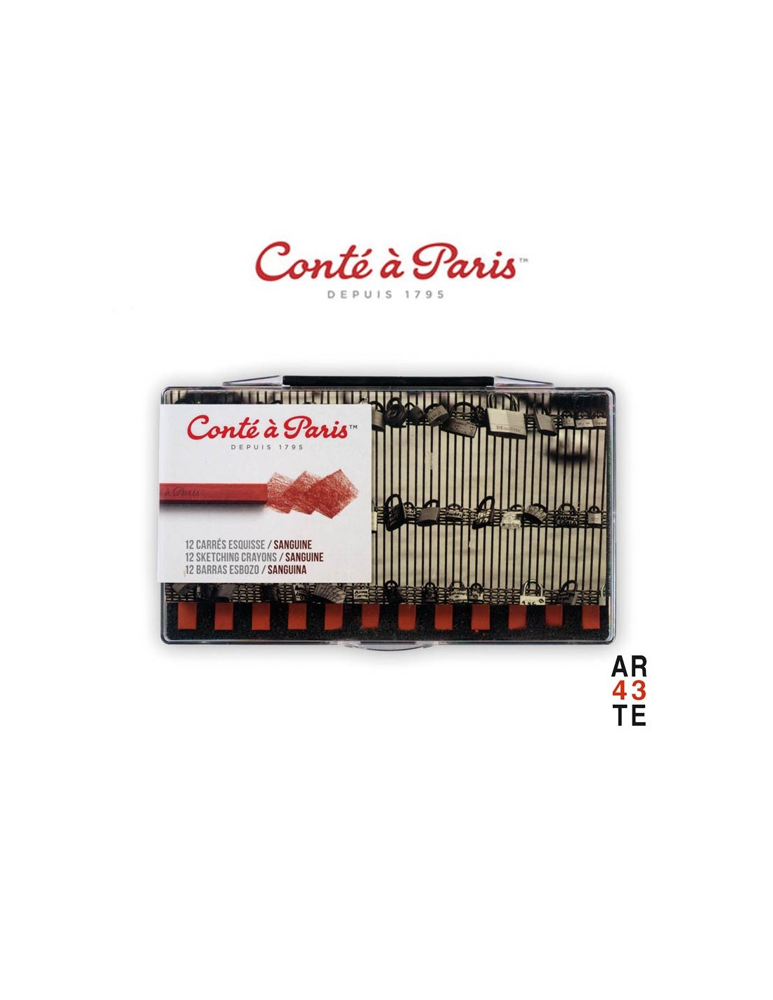 Las barras de esbozo Conté à Paris (Sketching) son muy suaves de aplicar y están hechos de pigmentos naturales (óxidos de hierro, negro de carbón, dióxido de titanio), arcilla (caolín) y un aglutinante (éter de celulosa).