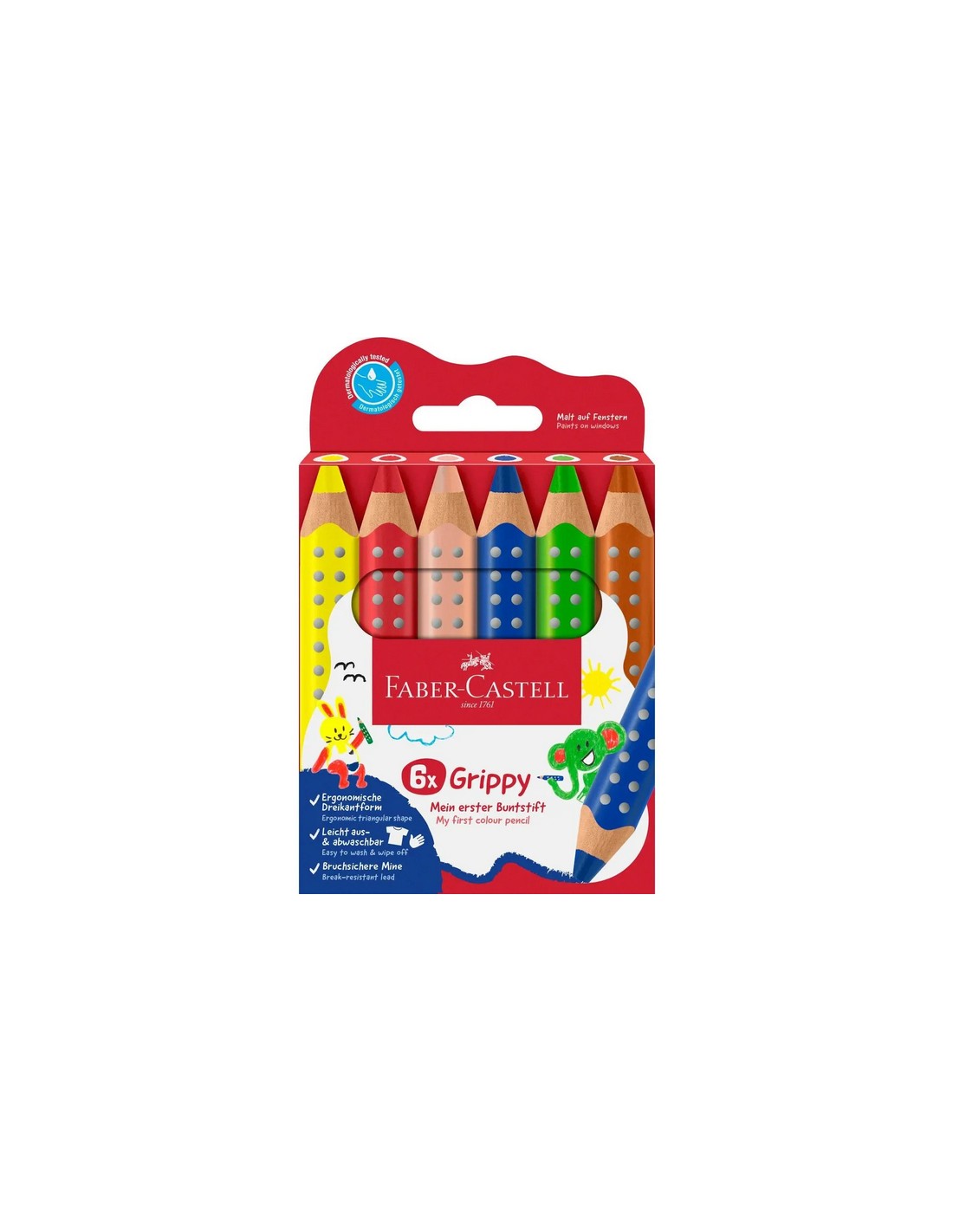 Ccolores brillantes que los niños adoran. Forma triangular ergonómica que facilita el primer agarre del lápiz, desde el puño hasta el agarre con tres dedos. Su forma evita que se deslice sobre la mesa.