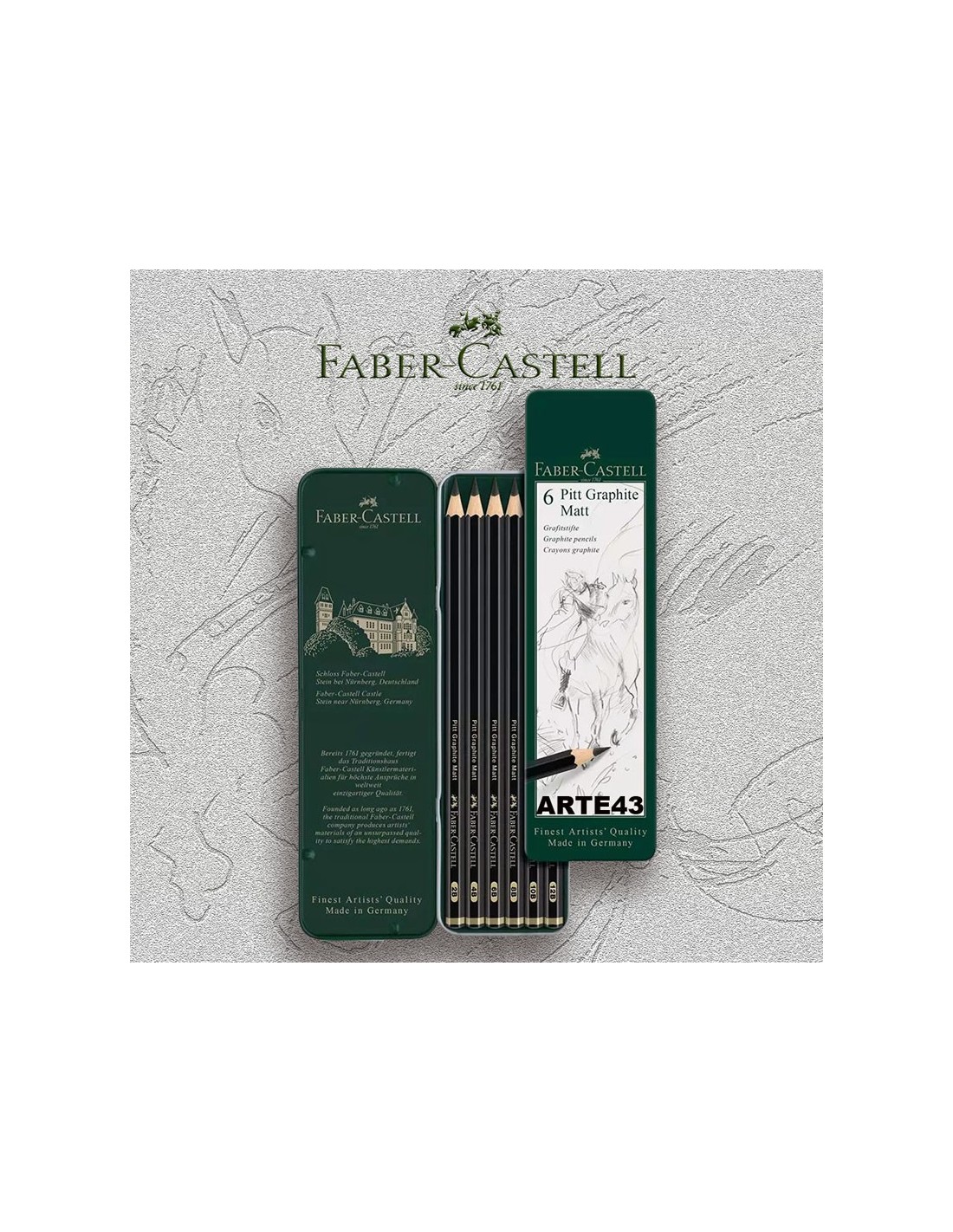 Estuche metálico con 6 lápices de grafito mate.2B,4B,6B,8B,10B,12B.