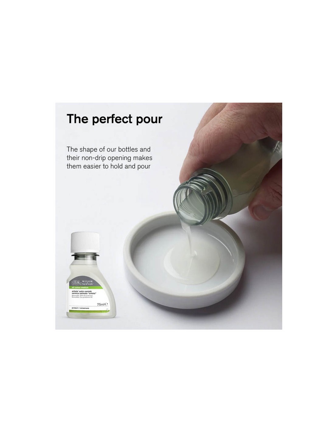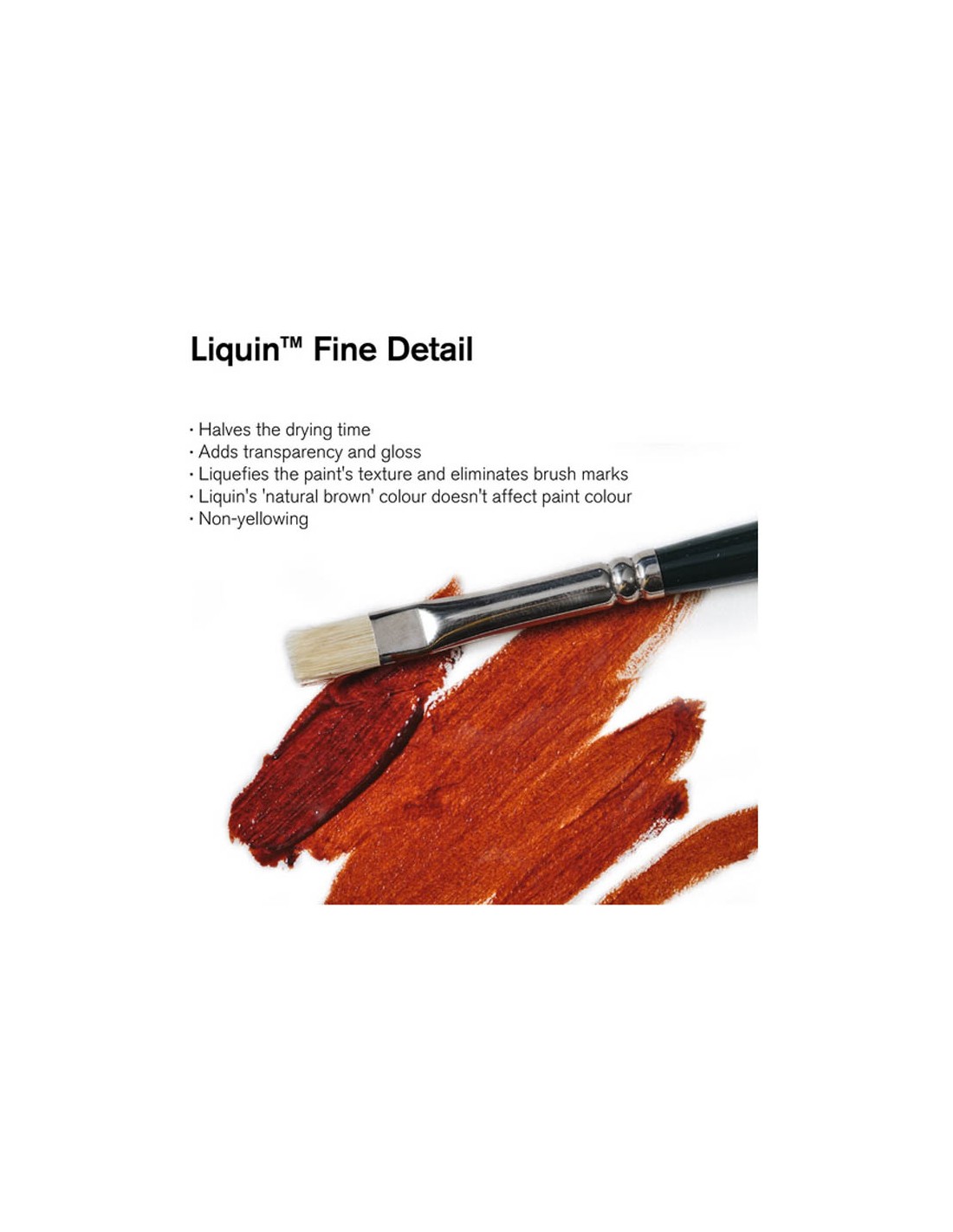 El medio más fluido de la familia Liquin™. Se añade al color para obtener una mezcla de baja viscosidad. Reduce la retención de la pincelada. Permite que la pintura se seque más rápido y facilita el trabajo con varias capas.