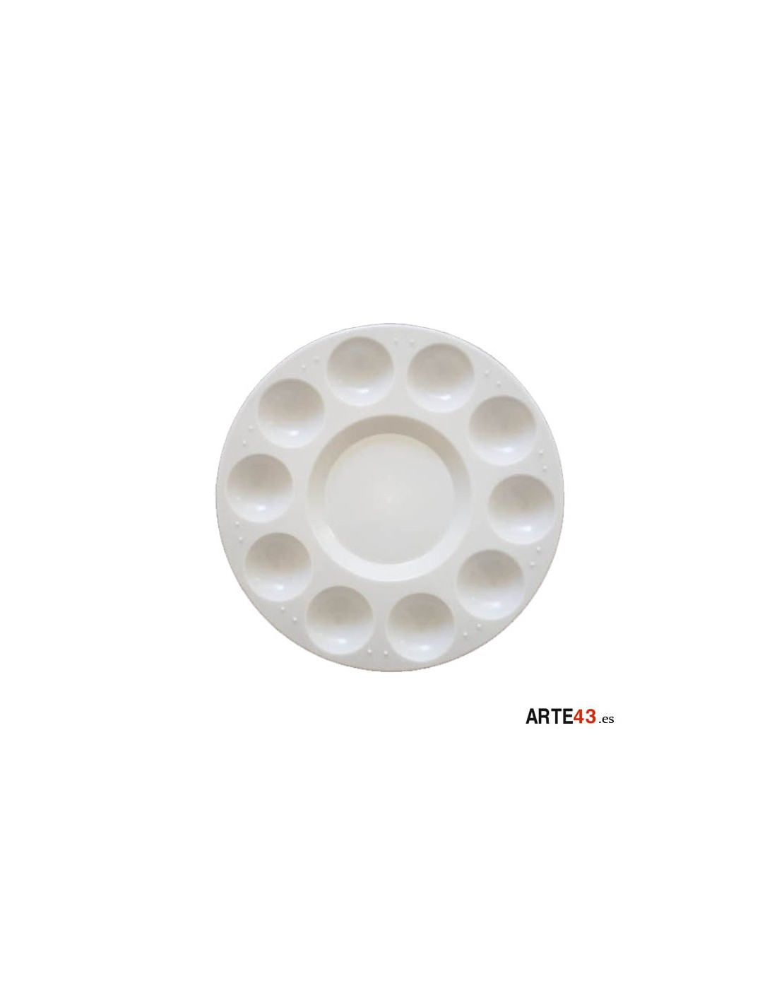 Paleta pintor de plástico redonda con 10 pocillos.