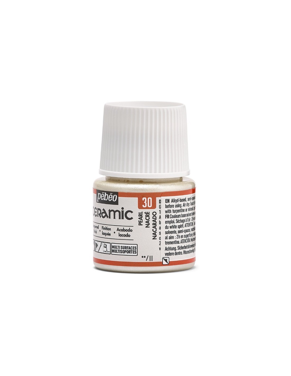 CUALIDAD: Colores opacos y muy brillantes (acabado laca), a base de solvente, ideales para decorar cerámica. Pueden utilizarse sobre arcilla, madera y lienzo. Buena resistencia a la luz. Colores que se pueden mezclar entre sí. SECADO: La superficie seca en dos horas y en 10 horas a profundidad. El tiempo de secado varía según el espesor de la capa de pintura, la temperatura y la humedad de la pieza donde se aplica el producto. SOPORTES: arcilla, cerámica, loza, madera, lienzo, metal… DILUCIÓN: esencia mineral inodora owhitespirit. MANTENIMIENTO (de las superficies decoradas) :una vez secos, los colores resisten el lavado ligero a mano, sin remojo. Resisten a los productos de limpieza para vidrios. Los objetos decorados conCERAMIC no pueden ser utilitarios, son únicamente decorativos y sólo podrán decorarse las superficies que no estarán en contacto con los alimentos.