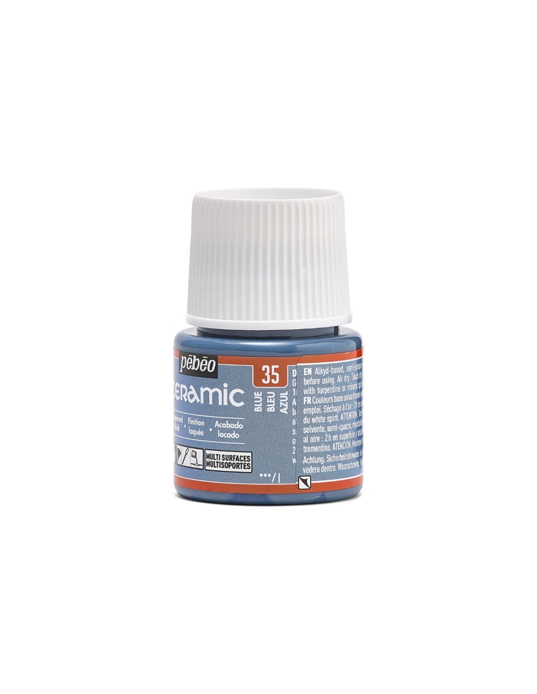CUALIDAD: Colores opacos y muy brillantes (acabado laca), a base de solvente, ideales para decorar cerámica. Pueden utilizarse sobre arcilla, madera y lienzo. Buena resistencia a la luz. Colores que se pueden mezclar entre sí. SECADO: La superficie seca en dos horas y en 10 horas a profundidad. El tiempo de secado varía según el espesor de la capa de pintura, la temperatura y la humedad de la pieza donde se aplica el producto. SOPORTES: arcilla, cerámica, loza, madera, lienzo, metal… DILUCIÓN: esencia mineral inodora owhitespirit. MANTENIMIENTO (de las superficies decoradas) :una vez secos, los colores resisten el lavado ligero a mano, sin remojo. Resisten a los productos de limpieza para vidrios. Los objetos decorados conCERAMIC no pueden ser utilitarios, son únicamente decorativos y sólo podrán decorarse las superficies que no estarán en contacto con los alimentos.