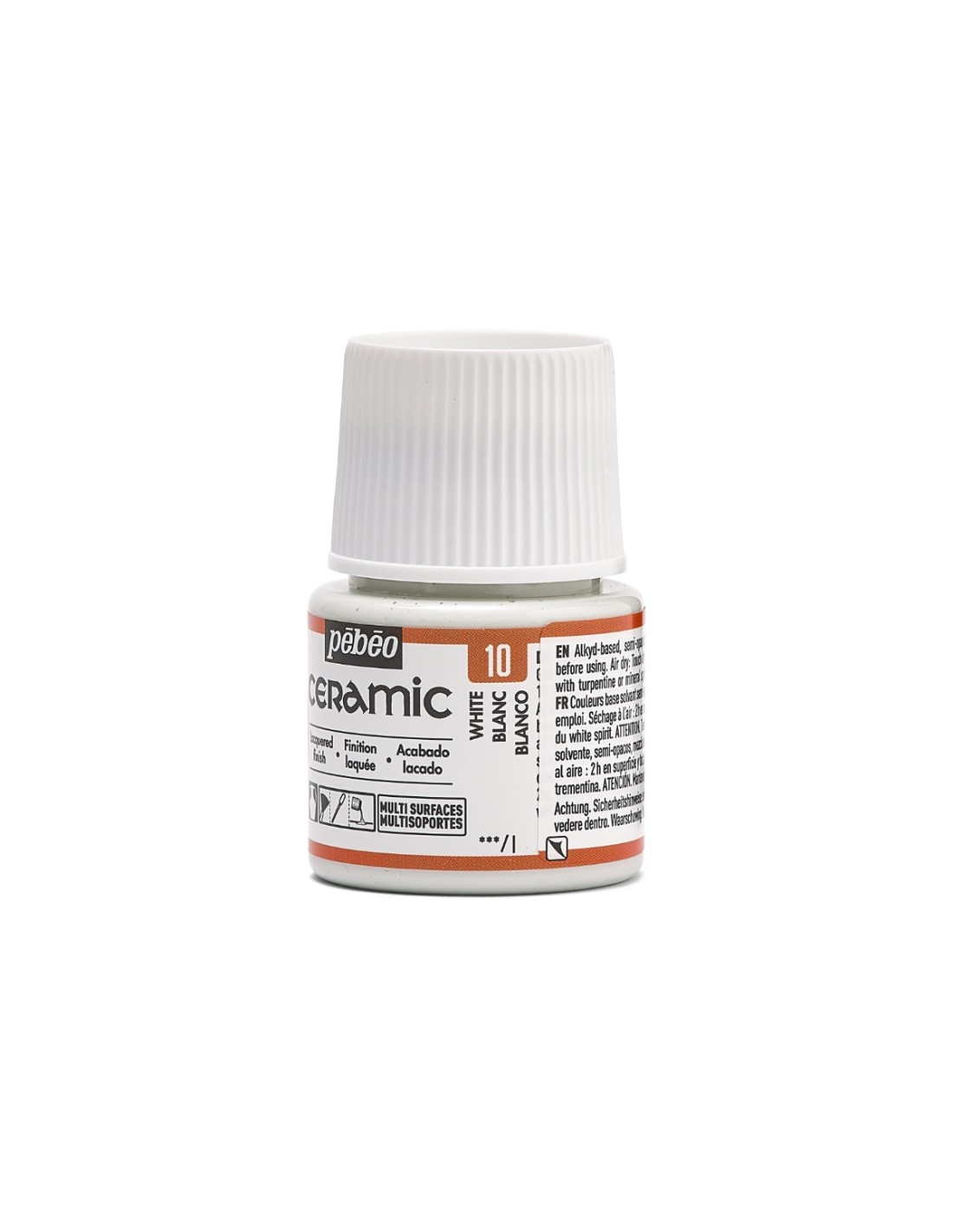 CUALIDAD: Colores opacos y muy brillantes (acabado laca), a base de solvente, ideales para decorar cerámica. Pueden utilizarse sobre arcilla, madera y lienzo. Buena resistencia a la luz. Colores que se pueden mezclar entre sí. SECADO: La superficie seca en dos horas y en 10 horas a profundidad. El tiempo de secado varía según el espesor de la capa de pintura, la temperatura y la humedad de la pieza donde se aplica el producto. SOPORTES: arcilla, cerámica, loza, madera, lienzo, metal… DILUCIÓN: esencia mineral inodora owhitespirit. MANTENIMIENTO (de las superficies decoradas) :una vez secos, los colores resisten el lavado ligero a mano, sin remojo. Resisten a los productos de limpieza para vidrios. Los objetos decorados conCERAMIC no pueden ser utilitarios, son únicamente decorativos y sólo podrán decorarse las superficies que no estarán en contacto con los alimentos.