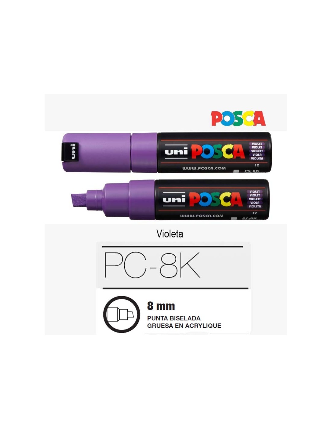 El PC-8K punta gruesa biselada permite a la vez cubrir amplias superficies y dibujar curvas nítidas. Disponible en una amplia gama de colores, es ideal para marcar y realizar sombreados y grafitis.