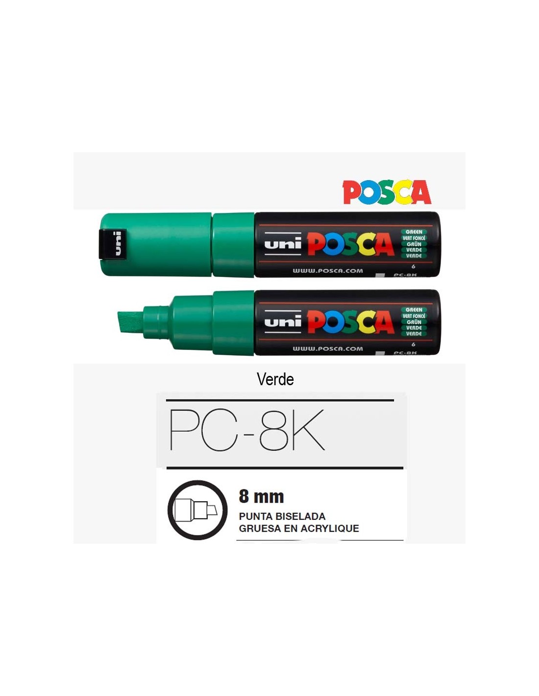 El PC-8K punta gruesa biselada permite a la vez cubrir amplias superficies y dibujar curvas nítidas. Disponible en una amplia gama de colores, es ideal para marcar y realizar sombreados y grafitis.