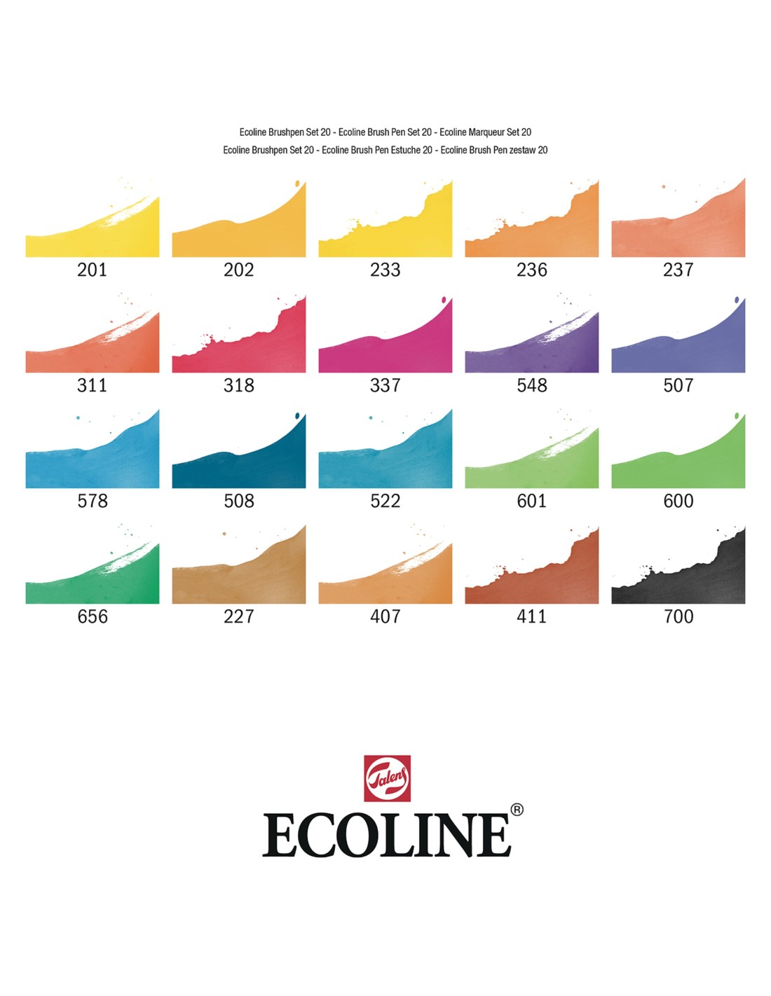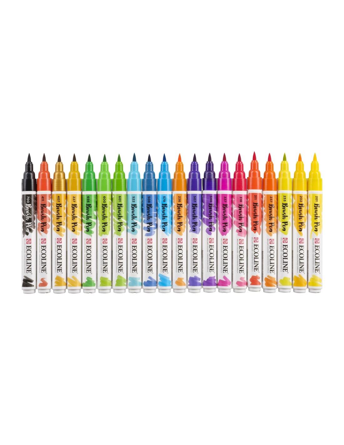 Contenido: 20 Brush Pens (201 - 202 - 233 - 236 - 237 - 311 - 318 - 337 - 548 - 507 - 578 - 508 - 522 - 601 - 600 - 656 - 227 - 407 - 411 - 700)